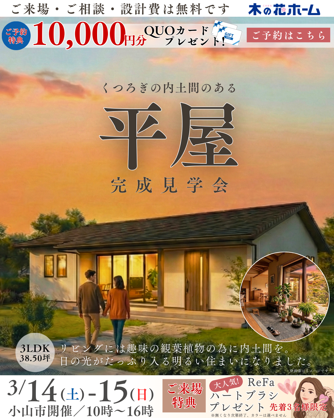 【宇都宮市】平屋の住まい 完成見学会【2月21日~22日開催】