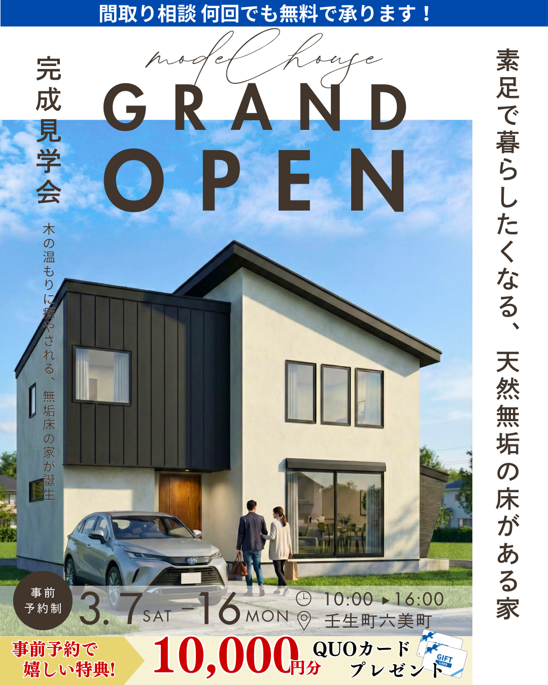 【壬生町六美町】最新!3LDKモデルハウス 完成見学会|GRAND OPEN【3月7日~16日開催】