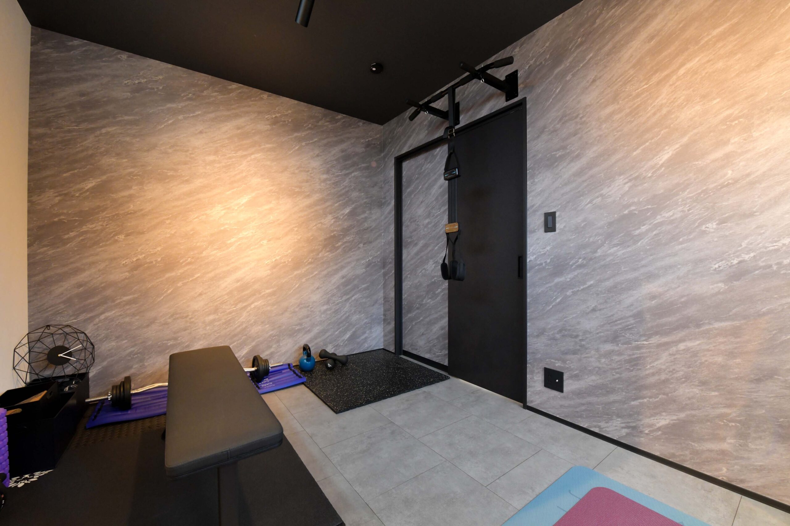 リビングなどの生活空間と分けることで集中しやすく、趣味の時間にも最適。 トレーニングを楽しむホームジムとして活用されています。