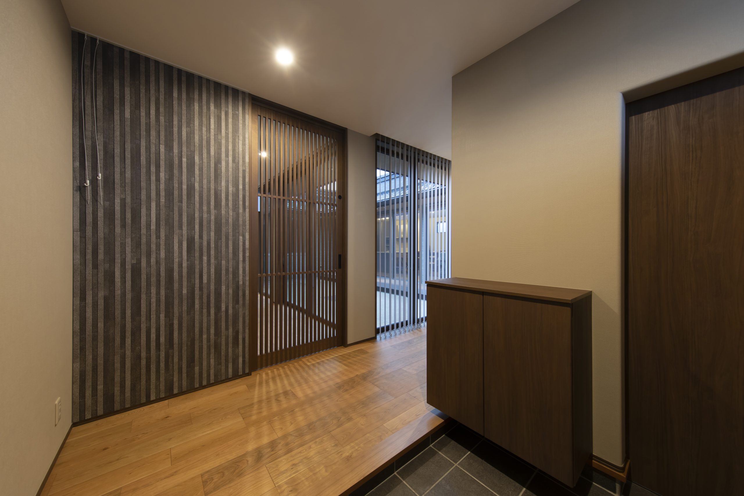 外壁の素材や色味と、内装の床材や建具のトーンを揃えることで洗練された住まいになります。