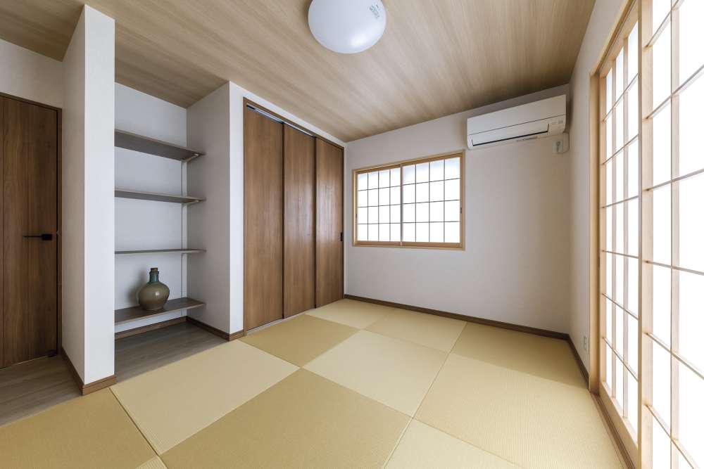 室内には、無垢床材や木製建具など自然素材の質感が随所に採用され、落ち着きのある空間を演出しています。