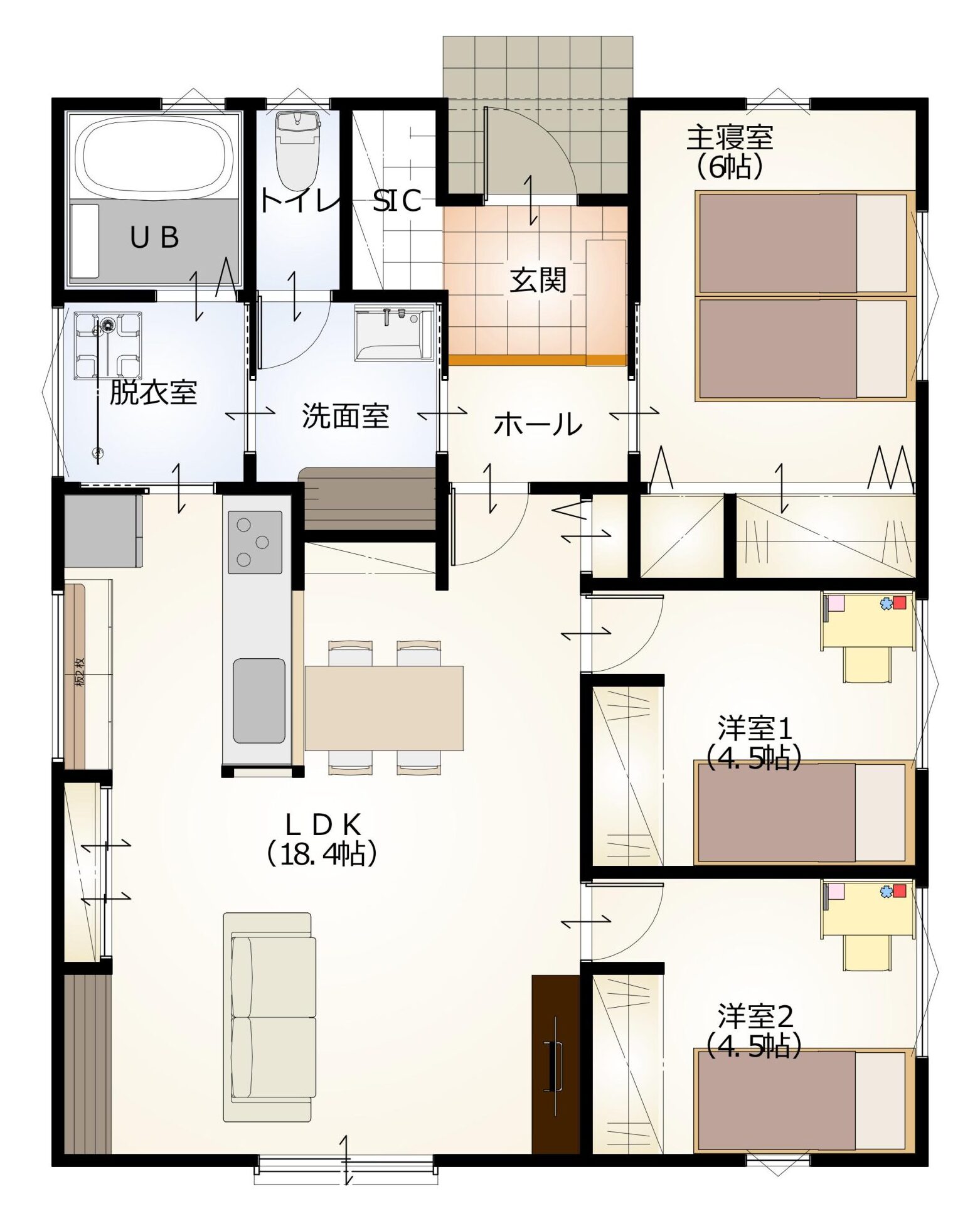 オール電化!敷地面積62坪の土地に建つ平屋の3LDKコンパクトハウス!
