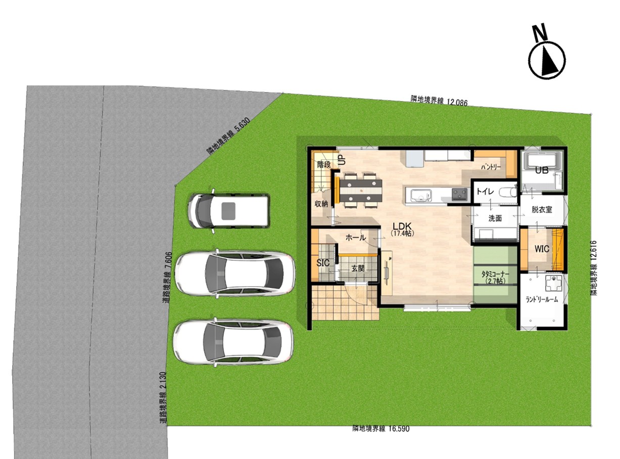 土地+建物+外構(エアコン+カーテン+照明含む)・パントリー・